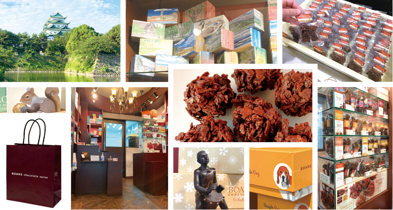 くちどけの良い、店内手づくり製法の 「ロイヤルクランチ・チョコレート」専門製造販売です。 濃厚カカオ風味とサクサク食感が特徴で、さまざまな種類を取り揃え、御礼・御祝・お手みやげ・プレゼントなどのギフトにお使い頂けるよう、店内120種類以上のコンセプト・ギフトボックス(全種類オリジナル)をご用意致しました。 〒451-0042 名古屋市西区那古野1-2-16 アンドツリーB phone 052-880-8740 【ご予約について】 店頭ご注文のみお承り致しております。 ※電話・Eメール等でのご予約を承っておりません。 【アクセス】 JR名古屋駅桜通口・名古屋城正門より、 それぞれ徒歩約15分