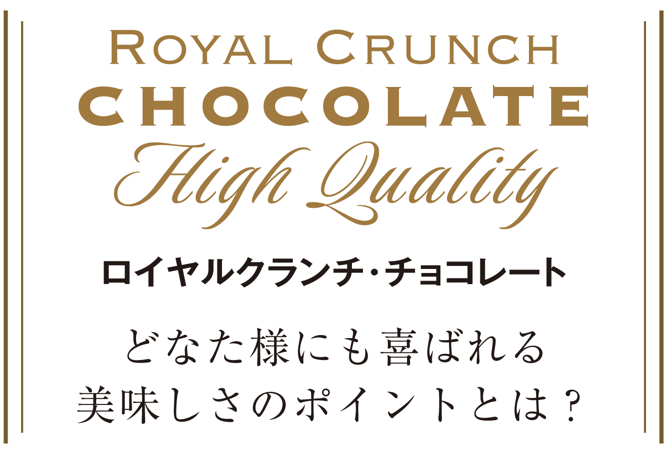 ROYAL CRUNCH CHOCOLATE“ORIGINAL” 【通常商品】 ロイヤルクランチ・チョコレート〈オリジナル〉 シンプル&ベーシック、カカオ分48%のポピュラーな味わい。クーベルチュール・チョコレートの本格派で濃厚な味わいと、香りの良いフレッシュバターを使ったフレーク状の薄焼きクッキーの絶妙なミックス。 ●おすすめ保存条件:温度15〜25℃/湿度50%以下 ●お日持ち:〈秋・冬・春〉約1ヶ月/〈夏季〉約2週間 ※詳しくはお求めの際に賞味期限をご確認下さい。尚、開封後はお早めにお召し上がり下さい。 レギュラーサイズ(75g)税込1,512円 ライトサイズ(45g)税込1,080円 ミニサイズ(30g)税込756円 広大な地球上の、赤道付近の熱帯気候のみで生育する貴重なカカオの実から生まれ、南国らしい癒しと英気とハイグレードを感じさせる「濃厚カカオ風味」。 絶妙な歯応えと軽さ・口溶けをもった「サクサク食感」は、私たち日本人には無意識のうちに求められています。 日本人に最も好まれる風味と食感にフォーカス 原料、製法、鮮度等、あらゆる意味で〈高品質〉を追求したものが、当サロンの「ロイヤルクランチ・チョコレート」です。不思議と誰かにも食べさせてあげたくなってしまいます。