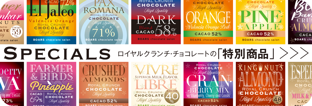 【通常商品】 ロイヤルクランチ・チョコレート〈オリジナル〉 シンプル&ベーシック、カカオ分48%のポピュラーな味わい。クーベルチュール・チョコレートの本格派で濃厚な味わいと、香りの良いフレッシュバターを使ったフレーク状の薄焼きクッキーの絶妙なミックス。 ●おすすめ保存条件:温度15〜25℃/湿度50%以下 ●お日持ち:〈秋・冬・春〉約1ヶ月/〈夏季〉約2週間 ※詳しくはお求めの際に賞味期限をご確認下さい。尚、開封後はお早めにお召し上がり下さい。 レギュラーサイズ(75g)税込1,512円 ライトサイズ(45g)税込1,080円 ミニサイズ(30g)税込756円 広大な地球上の、赤道付近の熱帯気候のみで生育する貴重なカカオの実から生まれ、南国らしい癒しと英気とハイグレードを感じさせる「濃厚カカオ風味」。 絶妙な歯応えと軽さ・口溶けをもった「サクサク食感」は、私たち日本人には無意識のうちに求められています。 日本人に最も好まれる風味と食感にフォーカス 原料、製法、鮮度等、あらゆる意味で〈高品質〉を追求したものが、当サロンの「ロイヤルクランチ・チョコレート」です。不思議と誰かにも食べさせてあげたくなってしまいます。