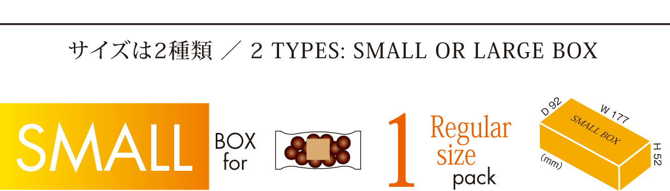 A La CarteBOX COLLECTION スモールボックス(= レギュラーサイズ 1袋用) 御箱代 税込432円 ラージボックス(= レギュラーサイズ 2袋用) 御箱代 税込540円 ■ご予約は店頭のみ承っております(お電話・Eメール等不可)。まとまったご注文(例えば10箱以上)の際には、前もってのご相談・ご予約をおすすめ致します。品切れの際はどうかご容赦下さい。 ■御箱のみの販売は行っておりません。 ■御箱製造時期により写真とはやや異なる場合がございます。